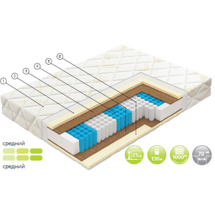4. R1000 7-Zone - инновационный блок стальных независимых пружин с семью поперечными зонами жесткости. Сбалансированное распределение жесткости по зонам гарантирует комфортный отдых c учетом анатомических особенностей спящего.