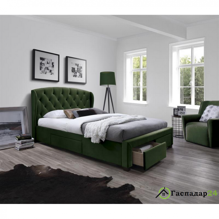 Роскошная двухспальная кровать Halmar Evora из ткани темно зеленого цвета c украсит Вашу спальню в современном стиле.