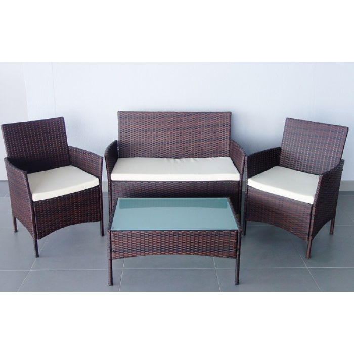 Набор садовой мебели для сада из искусственного ротанга (имитация ротанга из качественного пластика) арт.2214. Благодаря простым формам и линиям легко впишется в любой дизайн вашего дачного участка. Мебель самого высокого качества не доставит хлопот по уходу. Набор состоит из 4 единиц со стальным каркасом.
