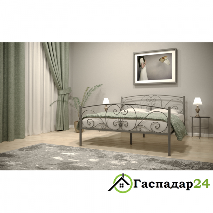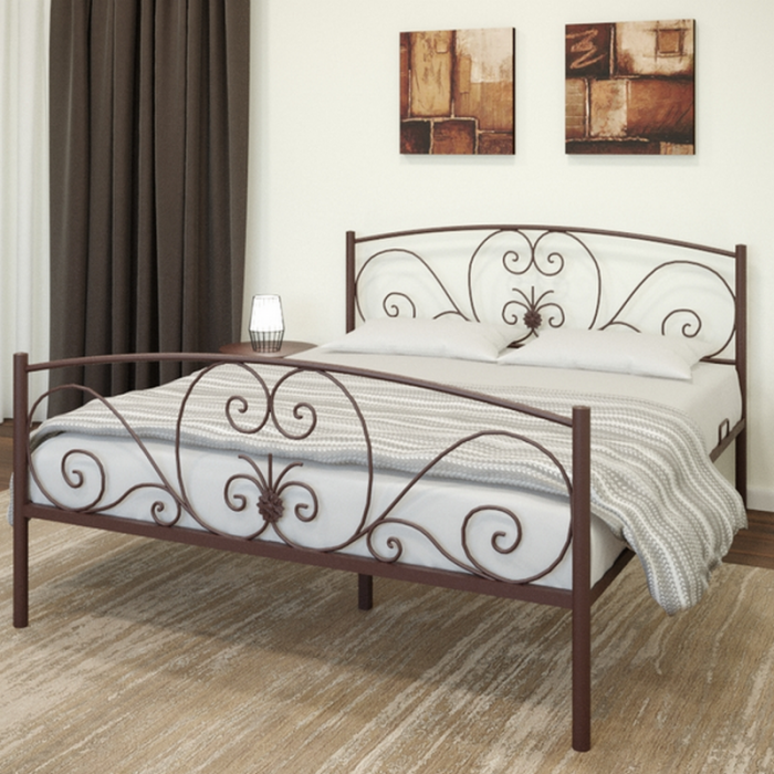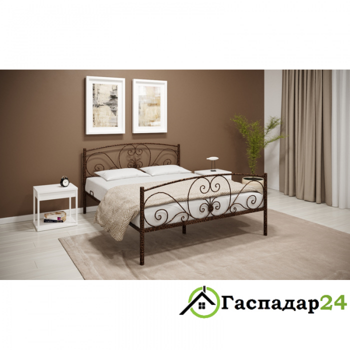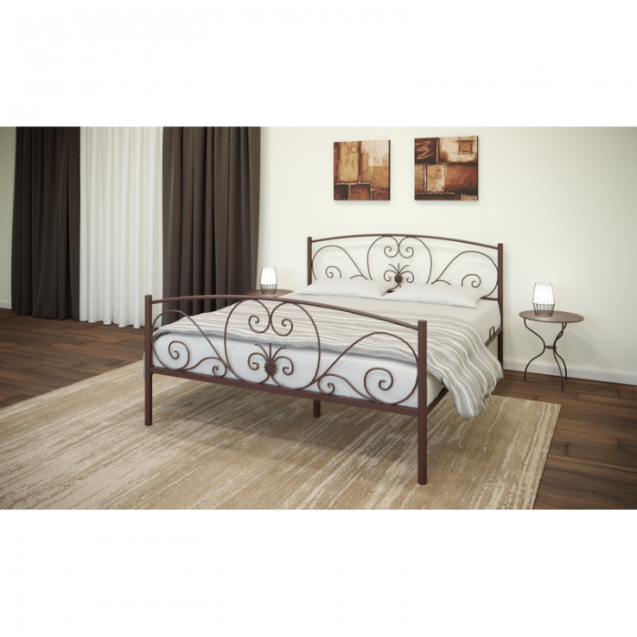Металлическая кованая кровать Нимфея представлена во всех стандартных размерах. Роскошная ковка и элегантный дизайн сделают Вашу комнату по-настоящему королевской. Цвет на фото - коричневый (медный антик).