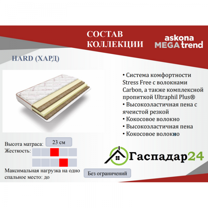 Состав беспружинного матраса Аскона Хард: