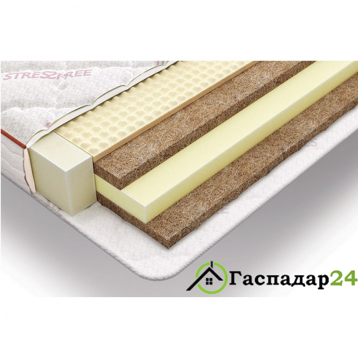 Модель не имеет в составе пружин, ее основу составляют слои кокосовой койры и эластичной пены. Модель имеет две разножесткие стороны. Вы можете переворачивать его и использовать то сторону с кокосом, то сторону с ортопеной.