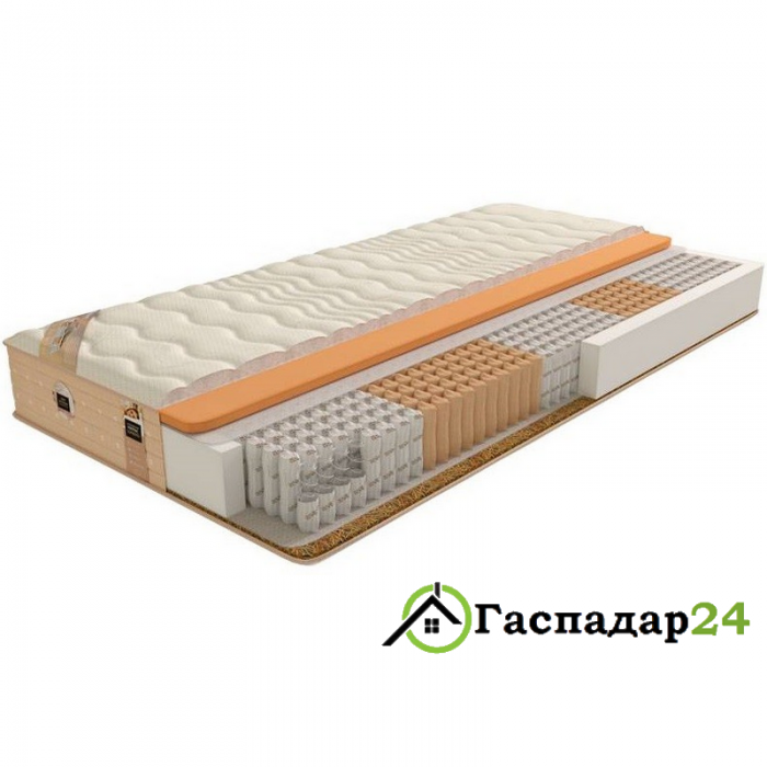 Askona Supremo уникальный по составу, оснащен разными по жесткости сторонами, что позволит Вам выбирать на какой стороне спать, на жёсткой используется кокосовая койра с комфортной толщей из искусственного латекса, который лежит в составе мягкого чехла матраца, а средняя сторона наделена толстым слоем ортопедической пены пониженной плотности, которая создаст имитацию парения на облаке и даст отдохнуть организму, расслабив мышцы всего тела.