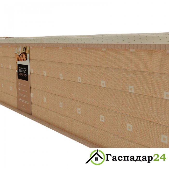 Так же в состав матраса Supremo входит натуральный лён, он отделяет пружинный блок от комфортных слоев, а так же расположен по бокам матраса создавая проветривание, такой эффект позволяет воздуху проникать через всё изделие не задерживаю в нем влагу и неприятный запах.