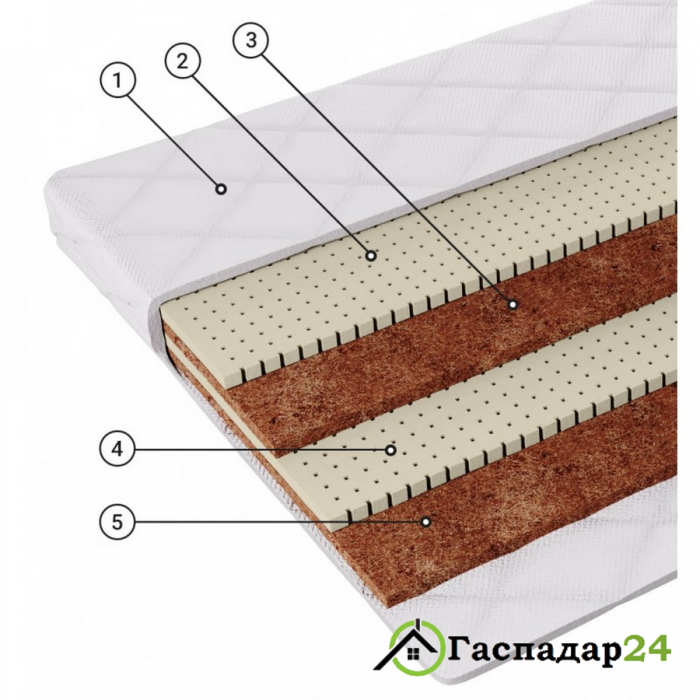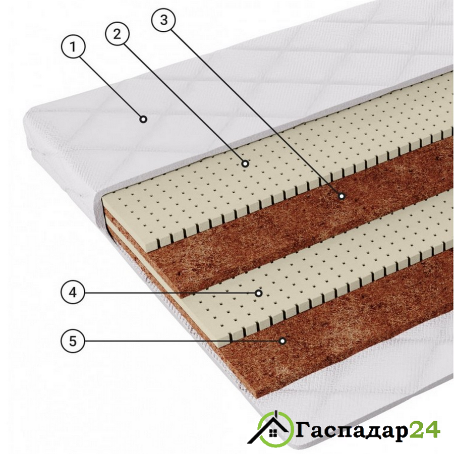 4. Натуральный латекс - уникальный материал для производства матрасов – высокоэластичный полимер природного происхождения. Производят натуральный латекс из сока каучукового дерева – бразильской гевеи. Высота латекса 3см.
