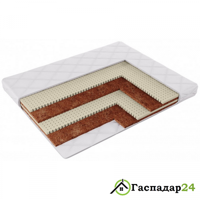 Беспружинный матрас Фабрики сна Hard-3. В составе которого натуральный латекс и настилочные слои кокосового волокна. В данной модели объединились ортопедические свойства натуральных компонентов, отсутствие запаха, повышенная износостойкость, экологичность. Модель имеет разные жесткости сторон среднежесткий\жесткий и съемный чехол из трикотажной ткани в состав которого входят хлопковые волокна. Матрас достаточно упругий и выдерживает нагрузки до 140кг.