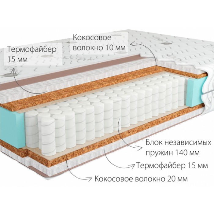Кокосовая койра - настилочный слой из кокосовой койры придает матрасу жесткость.Не гниет, не впитывает влагу, отлично вентилируется.Высота кокосовой койры 20 мм.