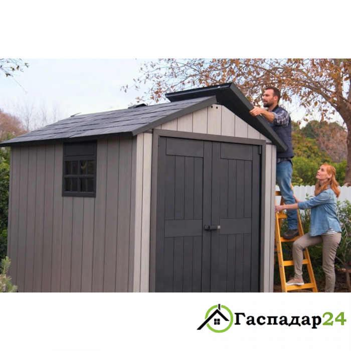 Хозяйственный домик Oakland 759 (Окланд 759) - это решение проблемы эффективного хранения многих предметов в ограниченном пространстве. Из-за небольшого размера он занимает мало места, но при этом такой же крепкий, прочный и функциональный, как его более крупные аналоги. Устойчивый к погодным условиям материал DUOTECH™, из которого изготовлен домик, с виду и на ощупь напоминает настоящее дерево, но отличается от дерева тем, что под действием стихий не гниет, не ржавеет и не выцветает. Домик имеет прочную напольную панель и кронштейны для двух опционально устанавливаемых полок (не входят в комплект), а также замок на дверях в качестве дополнительной защиты. Oakland 754 идеально подходит для хранения вещей упорядоченным способом, если пространство, которым мы располагаем, невелико: на балконе, террасе и в маленьком саду.