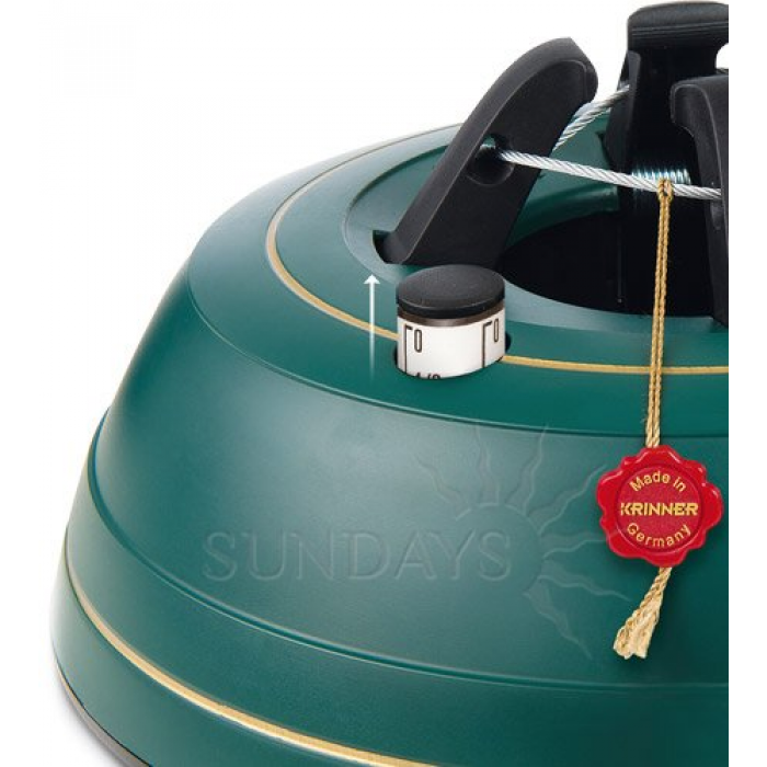 Премиум-подставка Krinner Premium XL – оснащена надежной системой блокировки, с автоматической системой закрывания замка. Установка ёлки на подставку проста и не требует особых навыков. Достаточно расположить дерево в центр подставки на металлический штырь и нажимая на педаль зафиксировать дерево. Звуковой сигнал оповещает о завершении фиксации ствола прижимным механизмом. Умный зажимной механизм осуществляет равномерный захват, что обеспечивает равномерное давление вокруг ствола. Запатентованный ремень безопасности с постепенным механизмом фиксации обеспечивает дополнительную устойчивость и безопасность, благодаря чему ваша новогодняя красавица не сможет самопроизвольно упасть. Также премиум-подставка Премиум XL оснащена поплавком, который помогает вам контролировать уровень воды в подставке.