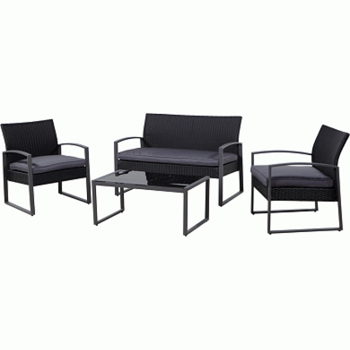 Состав набора: диван х 1, кресло х 2, столик х 1, цвет антрацит с черными подушками,св.серый 1 набор в коробке, размеры дивана: 111х64х74 см, кресла: 74х64х59 см, столика: 83X45X36CM, производство: Китай